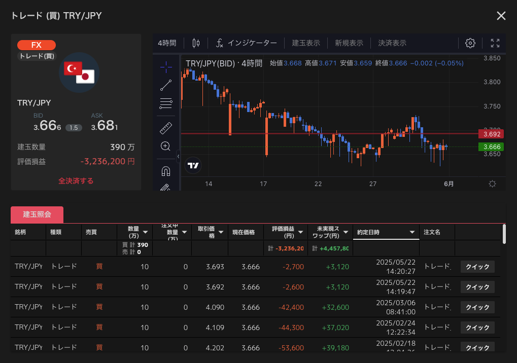 引き続き、下落していく可能性も高いと思いますので、ロスカットレートは2円を下回ることを意識しています。毎月のスワップで余裕ができたらリラを買っていきます。